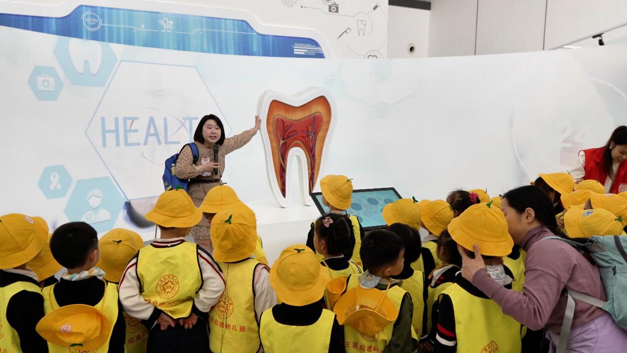 在中国永利23411规划展示馆,老师借助先进的口腔设备,利用简单易懂的语言生动地讲解洗牙、刷牙和龋齿等健康小知识,让小朋友们从小就养成爱牙的好习惯。