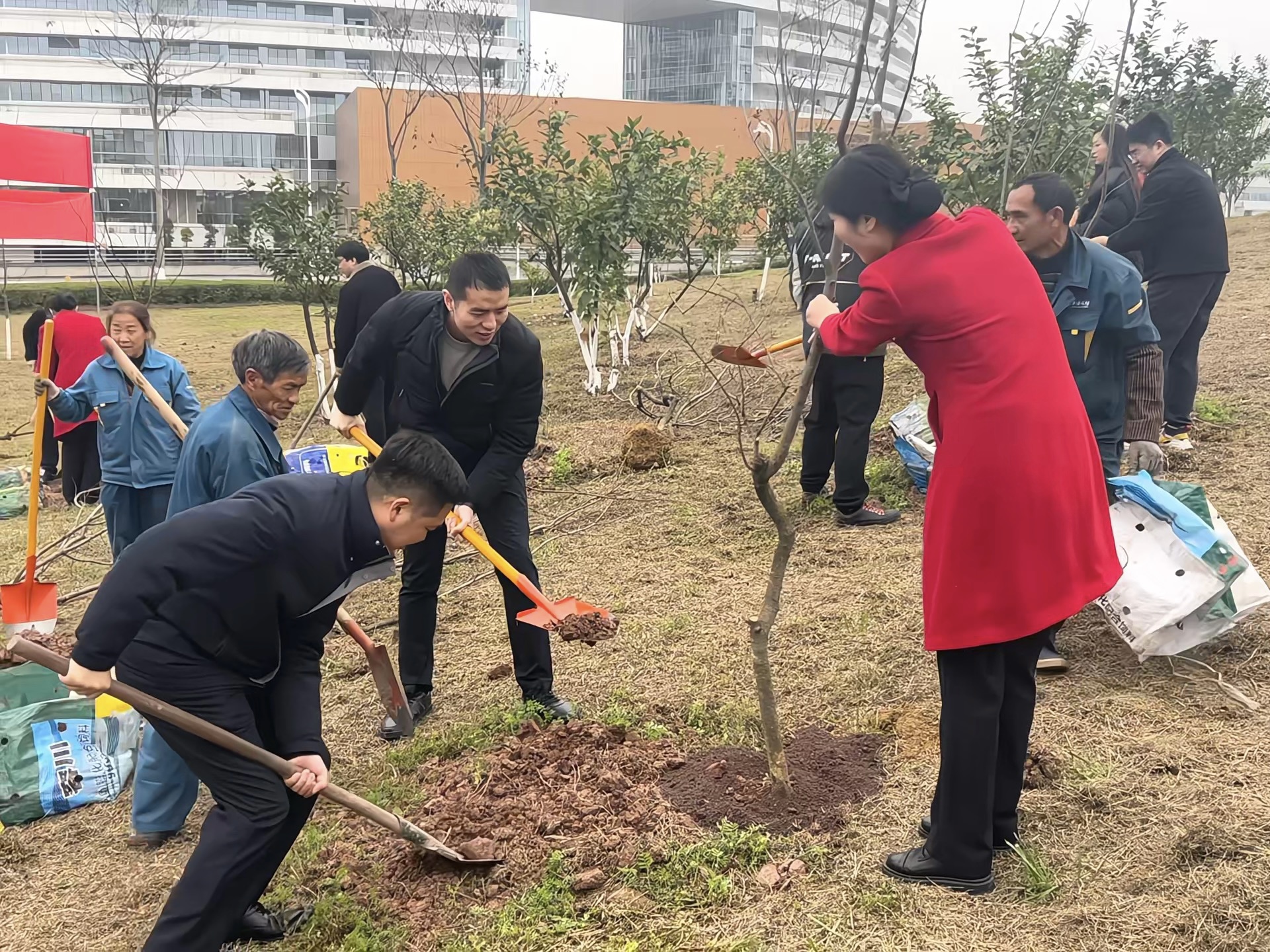 植树现场,处处是忙碌的身影,大家铲土培实、提桶浇水,三人成组、五人成团,每道工序都认真细致、一丝不苟。一番热火朝天的劳动后,一棵棵新栽种的树苗亭亭玉立,在明媚的春光中展现勃勃生机,为初春的永利23411平添丝丝活力。